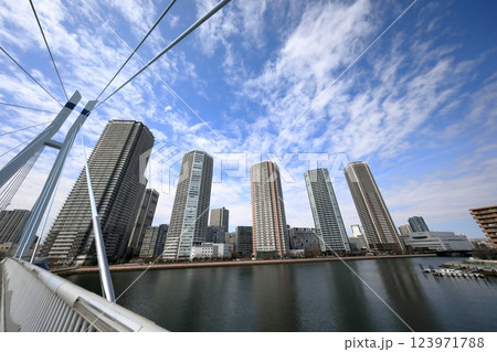 東雲のタワーマンションと辰巳桜橋(東京都江東区)