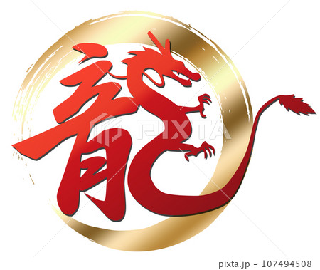 年賀2024 年賀状 辰 漢字 書道 筆文字 墨絵 水墨画 判子 手書き ビジネス イラスト素材