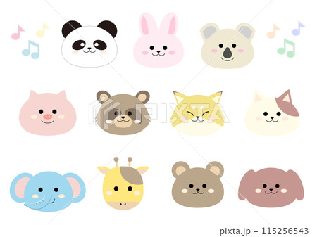 かわいい動物の顔のイラストセット