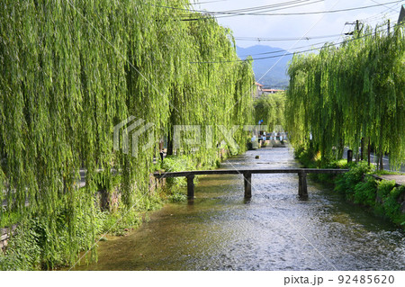 京都市の白川に架かる柳並木が涼やかな一本橋