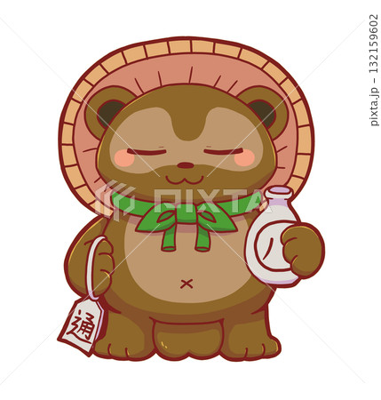 手描きのレトロな信楽焼のたぬき