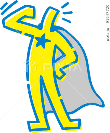 スーパーヒーローの棒人間。手描きのベクターイラスト。