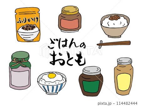 ご飯のお供のイラストセット(手描き、カラー)