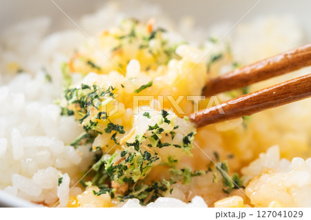 卵かけご飯にふりかけのイメージ (写真素材)