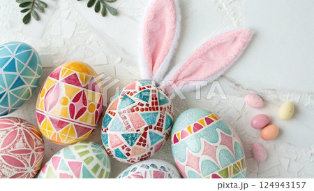 easter background with eggs and bunny ears of easter