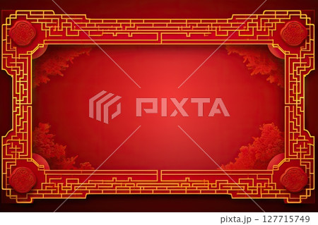 Harmony in Design Chinese New Year Banner with Abstract Oriental Background, Inspired by Red Square Windows - Vector Illustration.. created with Generative AI