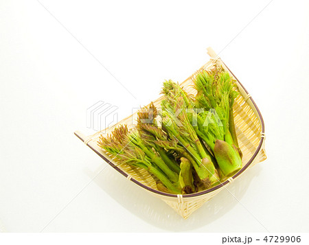 【水彩画】ザルにのせた春の山菜5種 植物 食材 素材 白バック PNG コピースペースあり