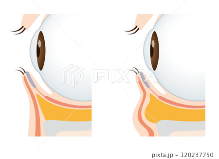 目の下のたるみ たるみのない目元と、たるんだ目元