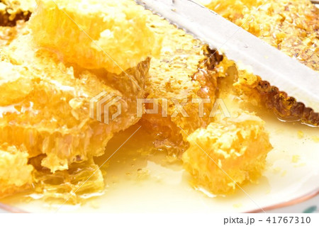 蜂箱から取り出し直後の巣蜜 クローズアップ 素材 背景