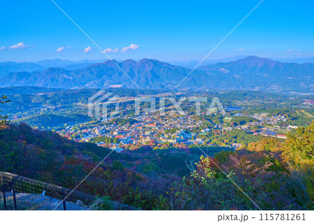 秋の群馬県渋川市伊香保町の上ノ山公園のときめきデッキ(展望台)から北側の眺望