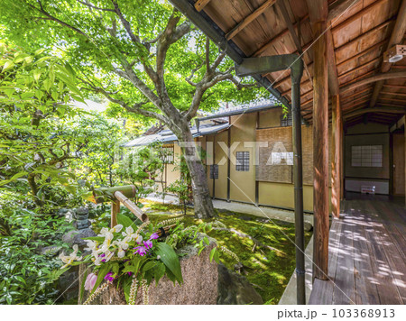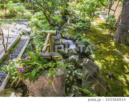 大徳寺 興臨院(こうりんいん)茶室前の花の手水鉢
