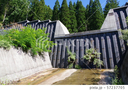 信州 白馬村の砂防施設 沢尻沢 砂防堰堤 堰堤を壁面材で覆った土石流に対応した堰堤