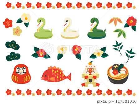 へび年 お正月ベクターイラストセット