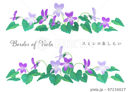 春らしいかわいい スミレの花のボーダー 水彩風 ベクターイラスト レーション
