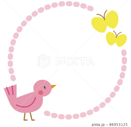 シンプルで可愛いちょうちょとピンクの小鳥の丸フレーム