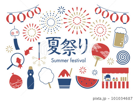 日本の夏 夏祭り スタンプ はんこ カラフル