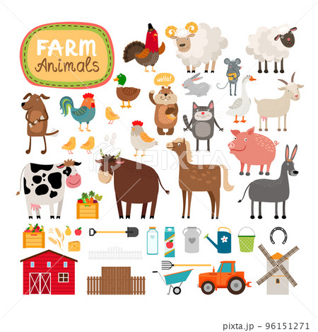 Farm Animals and Livestock with Poultry and Cattle Big Vector Set