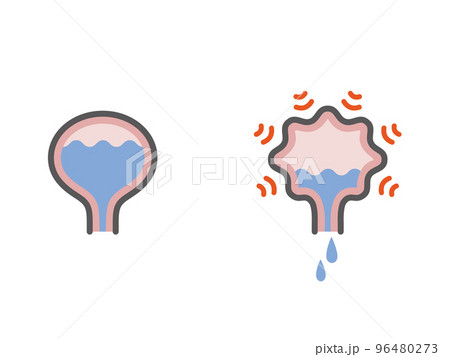 過活動膀胱と正常な膀胱のアイコン