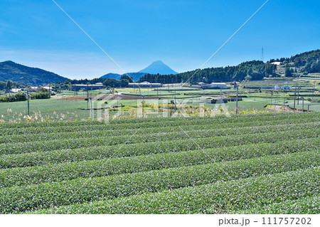 【高塚丘 (茶ばっけん丘)より開聞岳と一面の茶畑】 (高解像度版) 鹿児島県南九州市知覧町西元