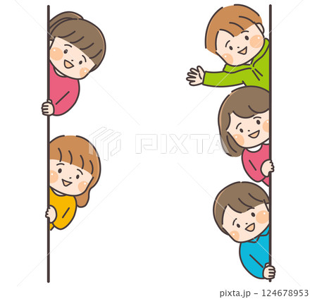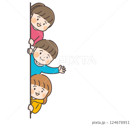 二頭身の白い人が壁からチラリの覗いているイラスト