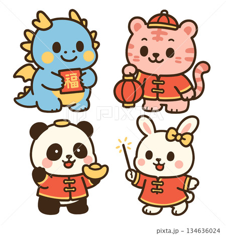Cute dragon lucky tiger panda rabbit red lantern gold ingot magic wand