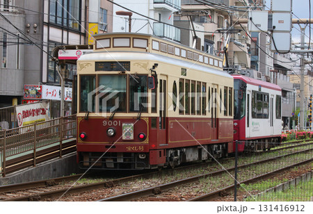 学習院下駅ですれ違う都電荒川線