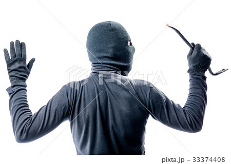 View from the back of a criminal in a balaclava