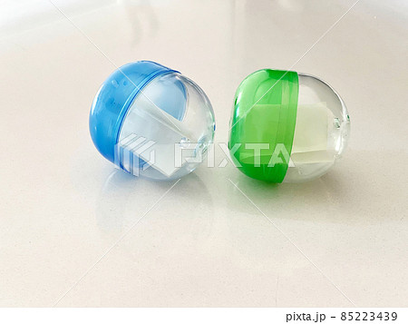 カプセルトイのカプセルを持つ女性の線画イラスト