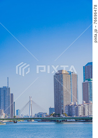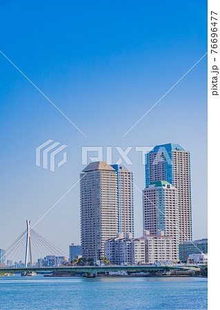 日本の都市風景 隅田川 中央大橋から明石町、勝どき方面