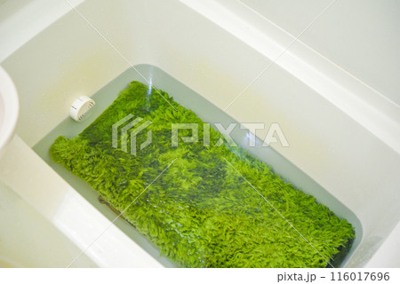 浴槽でラグマットの洗濯 つけおき