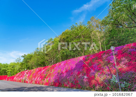 ツツジが咲き誇る春の風景