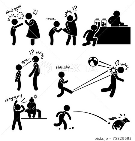 Naughty Bad Rude Rebellious Little Child Kid Boy Stick Figure Pictogram Icon. A set of human pictogram representing a bad little boy disrespecting adult.