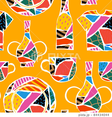 Colorful broken home object seamless pattern