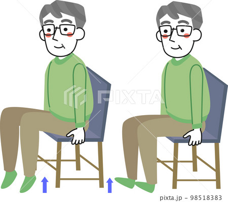 椅子に座ってつま先上げとかかと上げの運動をするシニア男性