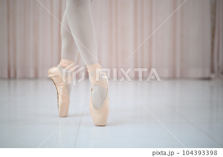 トウシューズでつま先立ちをしてるバレリーナの足元