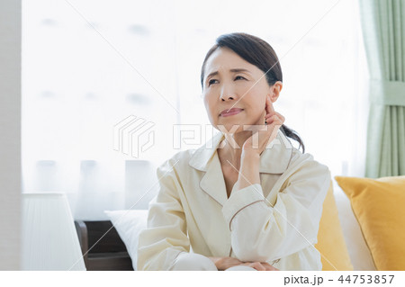 肩こりのシニア女性.