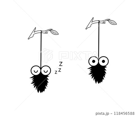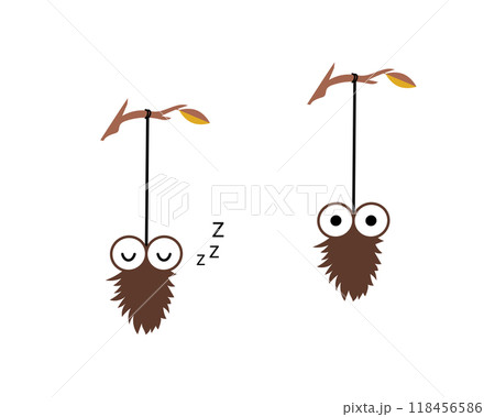 木の枝にぶら下がる蓑虫のシンプルでコミカルなイラストセット