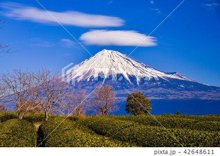 茶畑、つるし雲と富士山