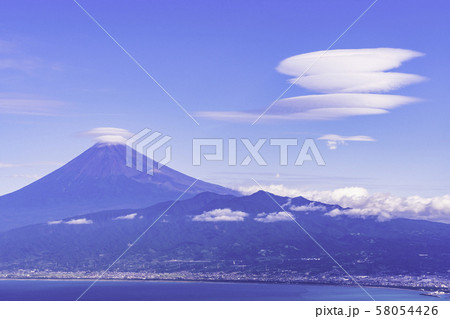 (静岡県)達磨山高原から望む、爽やかな富士山、レンズ雲
