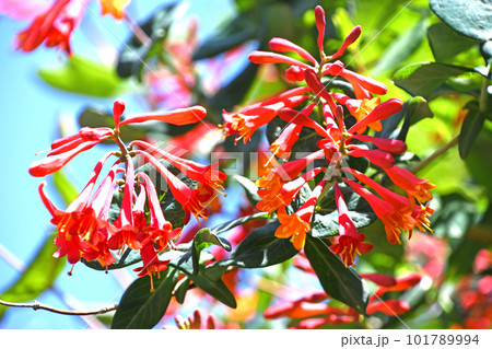 鮮やかに咲くツキヌキニンドウ(突抜忍冬)
