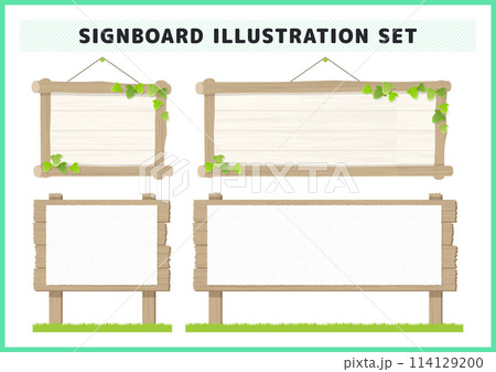 植物のついた木製の看板 森 掲示板 イラスト素材セット