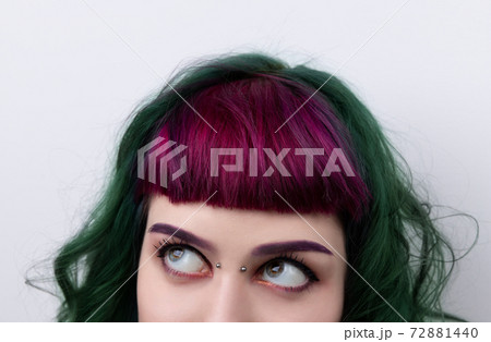 Beautiful woman with purple green professional colored hair