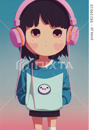 A fictional person, not based on a real person. A portrait of a creative child of a girl wearing fancy headphones. A lover of fashionable music. 3d rendering
