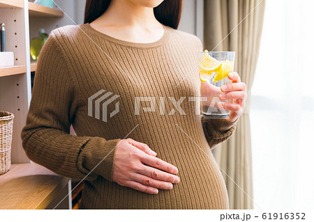 炭酸水を飲む妊婦 レモン