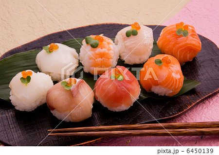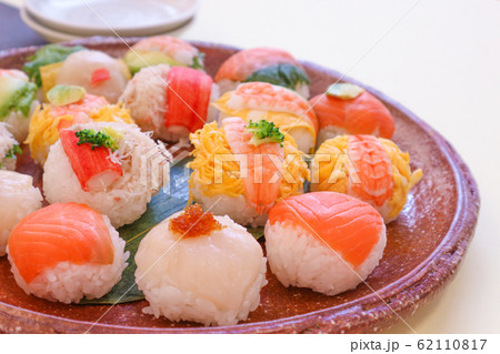 注意)お皿に小ゴミやレタッチ痕が残ります。手まり寿司のイメージ。
