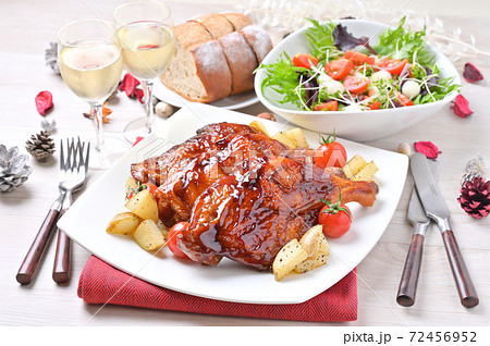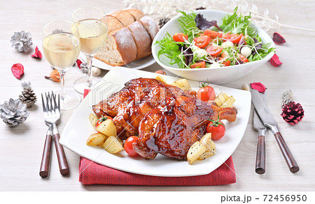クリスマスのローストチキン、ローストレッグ、鶏モモ肉焼き、鶏肉照り焼き、クリスマス料理、チキン。
