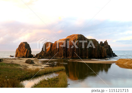京都・京丹後市 夕暮れの立岩・柱状節理