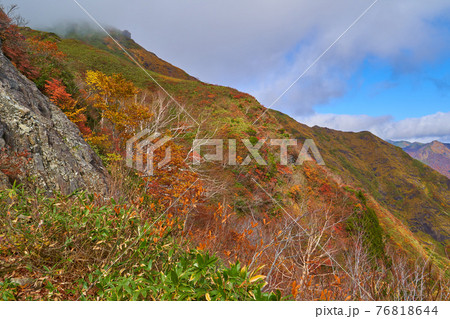 秋の谷川岳 熊穴沢避難小屋付近から南西側(爼嵒,小出俣山など)方面
