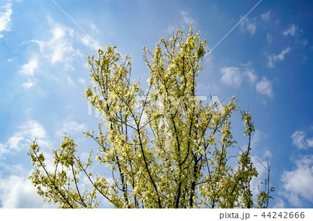 みさと公園の草原の大きなトウカエデの木の若葉と新緑