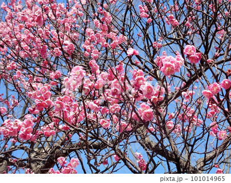 青空と美しく咲いた梅の花 唐梅 トウバイ